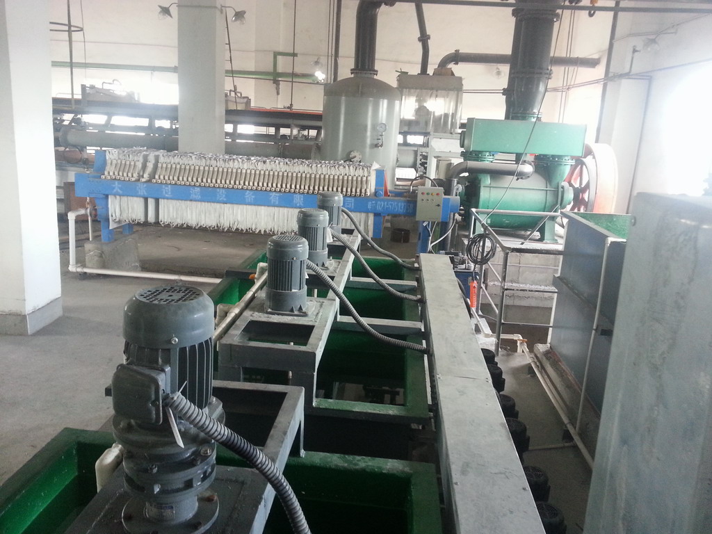 在絮凝箱中,加助凝剂(化学名聚丙烯酰胺,商品名PAM)的配合使用,可使已结晶析出的无机盐、重金属络合物及SS的细小矾花积聚成为较大颗粒,以便废水进入澄清器后更快的沉降。废水在澄清器中进行固液分离,澄清器采用易安装维护的竖流式,运行稳定可靠。澄清器在重力浓缩作用下形成浓缩污泥,浓污泥选用板框压滤机处理,处理后的污泥外运填埋。